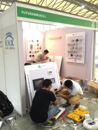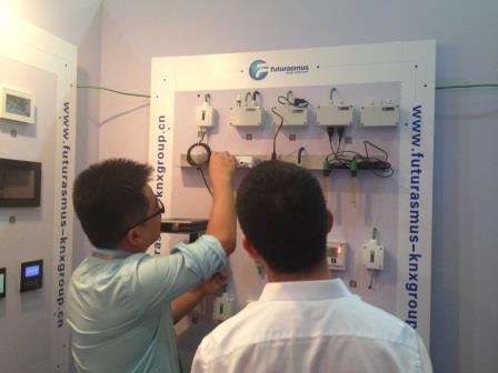 2014年国内最后一个大型智能建筑展----2014上海国际智能建筑展览会终于在中秋佳节前夕胜利开幕后圆满落幕!Futurasmus中国继参加2013广州建筑电气展之后,再次携众多产品参加了2014上海国际智能建筑展览会,产品来自5个国家(德国、意大利、西班牙、比利时、瑞士)的10个KNX品牌 ,9大类产品(智能开关、触摸屏、驱动器、网关、探测器、传感器、气象站、中控主机和KNX在线培训) ,总共超过60种产品呈现在专业观众眼前,颇有眼花缭乱,应接不暇的赶脚!(自吹一下了啦!嘿嘿 )。我们的工作人员来自亚非欧三个大洲(还缺少美洲、大洋洲,只是时间问题,我们的目标是占领全球! ),天朝的工作人员遍布东北、西北、华北、华东(听着好玄乎,华南、西南指日可待,简直就是跨国大企业! )。不自夸了,上图!有图才有真相!看官们自有评判!(谁敢不说好?!哈哈哈哈 )