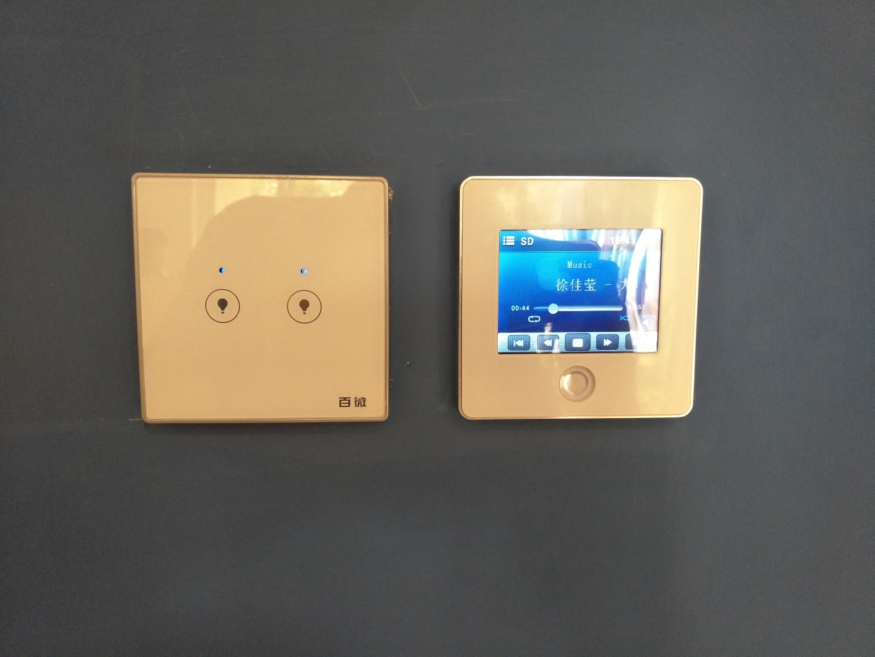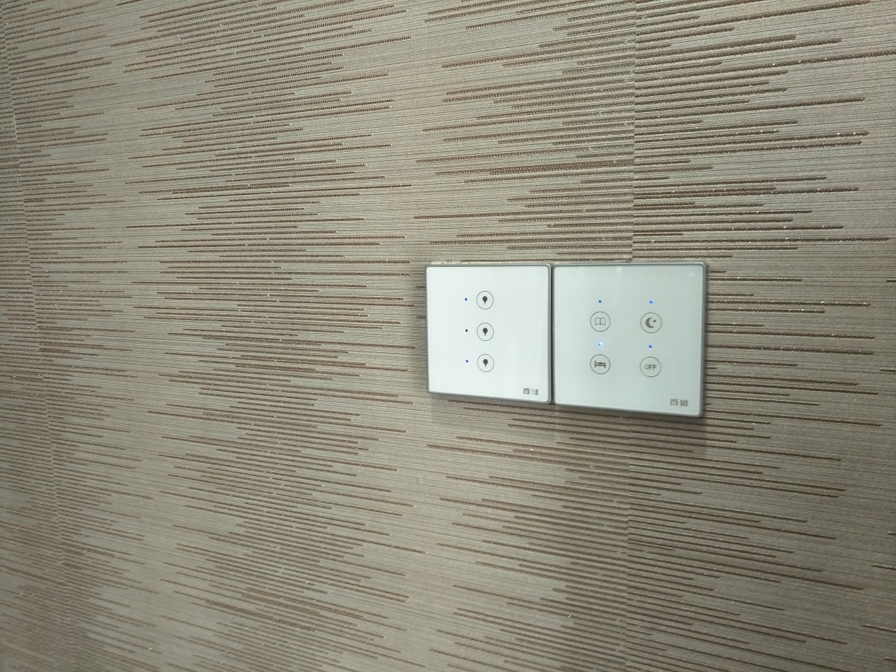 方案说明: 本案通过百微智能控制系统、安防系统及远程视频监控系统,将项目的客厅、书房、休息室、衣帽间、公共走廊、空调、地暖、娱乐室里的灯光、窗帘、环境进行了控制整合。从业主的定位与实际需求出发,进行智能家居系统功能设计。 全宅采用百微智能控制系统;简化墙面面板数量,全宅的灯光、窗帘、空调、地暖、新风都可通过一只液晶面板实现控制和管理;卫生间、过道及储物间等区域通过感应灯光实现方便节能目的。 通过百微智能系统控制所有空调、地暖、新风及电动窗帘,并且将它们每个系统的开关集成在场景面板上,最大化的减少面板数量,提高墙面整洁度。 室内入户及公共走廊设计吸顶式红外感应器。晚上:主人回到家中,车库感应器检测到是主人的车辆回家,自动进行100%的照明,安全模式自动“撤防”,车库门打开,车库中照明灯开启,车辆停泊好后,主人进入客厅,车库照明五分钟之后灯关闭。 入户厅,业主在进/出门的时候可方便控制整个别墅,使用手动或iPhone移动设备来操作。只需一个按键,便可调用各种活动场景,包括家里的空调、地暖、电动窗帘及新风系统,业主都可以了如指掌并且轻松控制。 卧室电动窗帘,采用双轨电机控制可分别开合纱帘、布帘。 主人出门上班,将安全程序设定为“离开”方式。以家庭网关为核心的控制系统自动将不必要的灯以及危险设备关闭;恒温器自动进行调整以节省能源,窗帘自动关闭,安防系统进入监视状态。 卧室智能面板,全中文显示,淡蓝的指示灯显示当前灯光开启状态,可实现卧室的灯光、窗帘、空调的控制与场景组合。 主人要求卧室安装背景音乐,并做定时。预约时间到点,背景音乐调至收音收听一天最新资讯,床头灯关闭,窗帘布帘缓缓打开。迎接一天好心情!